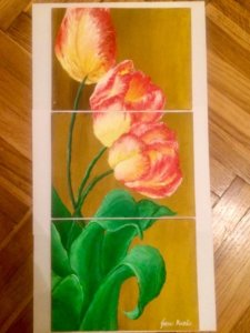 Avagy kissé hektikus úton, módon készült el végül a teljes kép. Erre még azt sem mondhatom, hogy hú, de gyorsan ment. Mert az az igazság, hogy lassan, kissé darabosan haladt a munka. De végül meglett, és tulipán lett! Ezt is festettem végre!:)